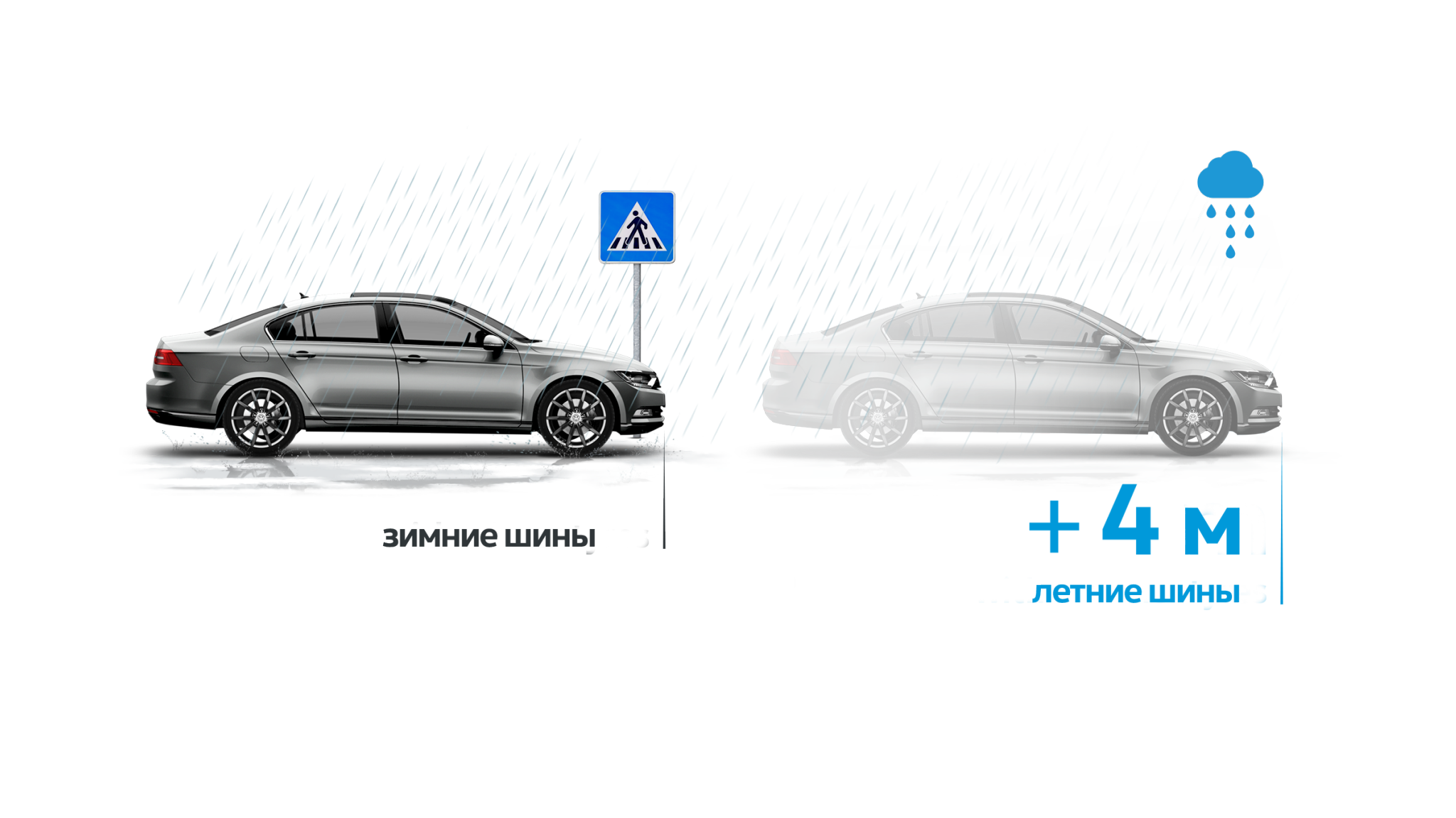 Почему следует переходить на зимние шины? Всё просто. Они улучшают сцепление с дорожным полотном, сокращают тормозной путь и, как следствие, уменьшают вероятность ДТП, когда температура окружающего воздуха падает ниже 7 °C, и неважно, идёт ли при этом снег или дождь.