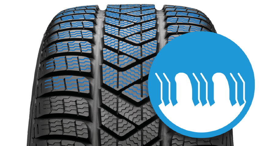 Улучшенное сцепление на обледенелом и заснеженном покрытии. При трогании с места мельчайшие насечки превращаются в большое количество кромок, сцепляющихся с покрытием. В них задерживается снег, а, как известно, снег лучше сцепляется именно со снегом.